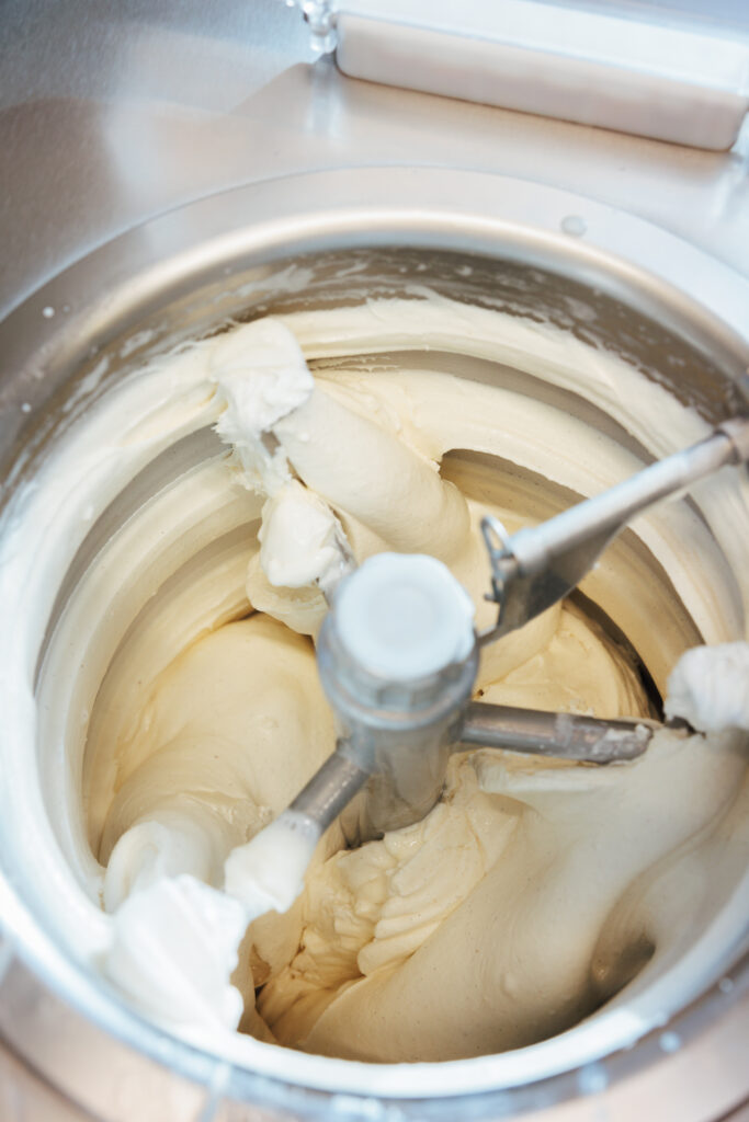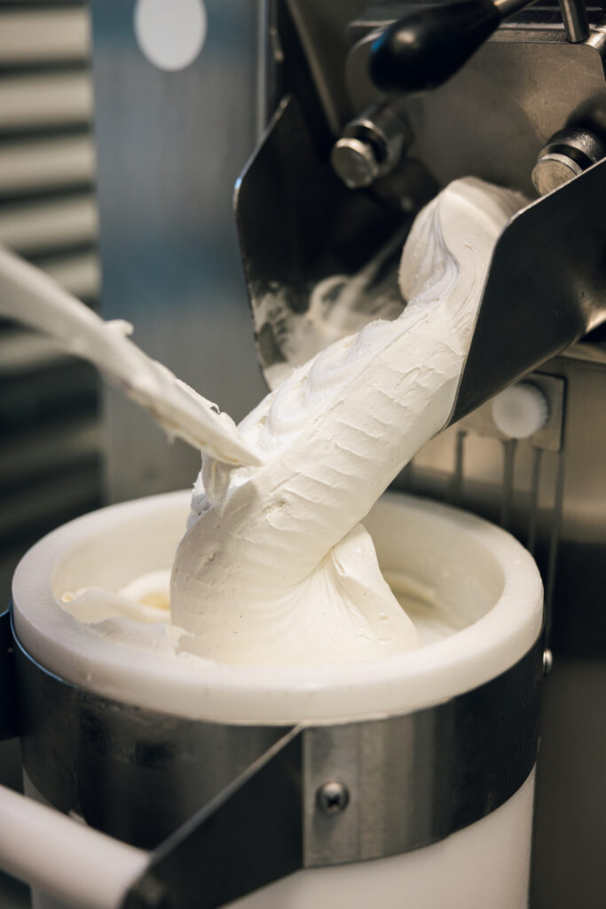 Mein Eis entspricht meinen eigenen Geschmacksidealen. Die sind eng verknüpft mit einer sinnvollen Regionalität: Milch, Sahne und Joghurt in bester Qualität kommen aus Weidehaltung. Wo immer möglich, nehme ich reife Früchte aus dem Umland. Wenn das nicht möglich ist, wähle ich die hochwertigsten Zutaten, die ich finden kann. Unsere Haselnüsse stammen aus dem Piemont, die super aromatischen Bio-Pistazien aus Sizilien und natürlich feinste Schweizer Schokolade – um nur drei Beispiele zu nennen. Ich habe alle Rohzutaten persönlich ausgewählt und Lieferanten, mit denen ich ständig in Kontakt stehe.