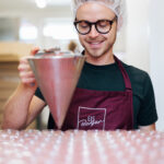 Mein Beitrag zum Einklang von Ökonomie, Ökologie und Gesellschaft. Nachhaltigkeit steht bei mir ganz oben. Bei mir bekommt Ihr nur Becher aus recyceltem Ocean-Plastic, die Ihr ideal zu Hause für alle möglichen Dinge weiterverwenden könnt. Ich verwende biologisch abbaubare Reinigungsmittel und die Etiketten werden in einer Druckerei in der Nachbarschaft gedruckt. Meine Rohstoffe beziehe ich möglichst regional. Ich möchte in Zukunft noch viel weiter gehen – ich beschäftige mich damit, wie ich z.B. weniger Wasser in der Produktion verwende. Seit Juni 2023 produzieren wir mit eigenst hergestelltem Strom vom Dach. Ich möchte innovative Wege gehen. Jeden Tag aufs Neue!