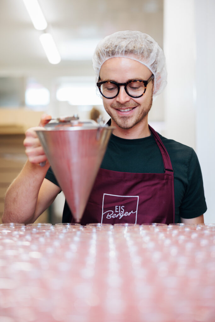 Wer steckt hinter EisBerger? Ich bin Peter und komme aus der Konditorenfamilie Telgmann. Mein Urgroßvater gründete die Bäckerei Berger, die jetzt meine Produktionsstätte ist. Mit 14 Jahren – schon vor meiner Konditorenlehre – entwickelte ich eine Leidenschaft: echtes Konditoreneis! Mein Papa ging mit mir die ersten Schritte. Ich schaute ihm bei seiner Eisproduktion über die Schulter. Bald entwickelte ich meine eigenen Ideen und schnell habe ich selbst Verantwortung übernommen. Wer mich kennt, weiß: Ich bin mit Herzblut bei der Sache.
